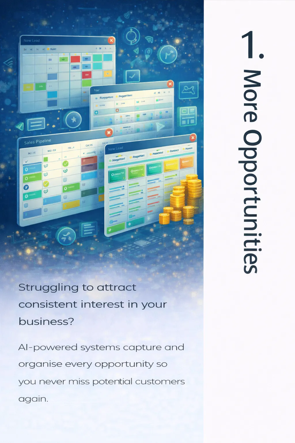 Rob the RoboLead™ Engineer works behind the scenes to help businesses capture opportunities, organise conversations, and keep their pipelines moving.
